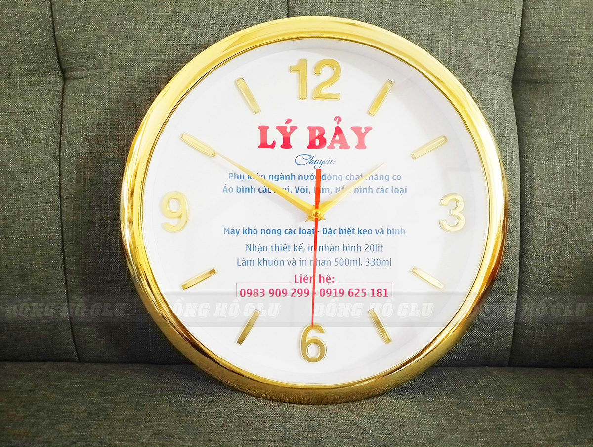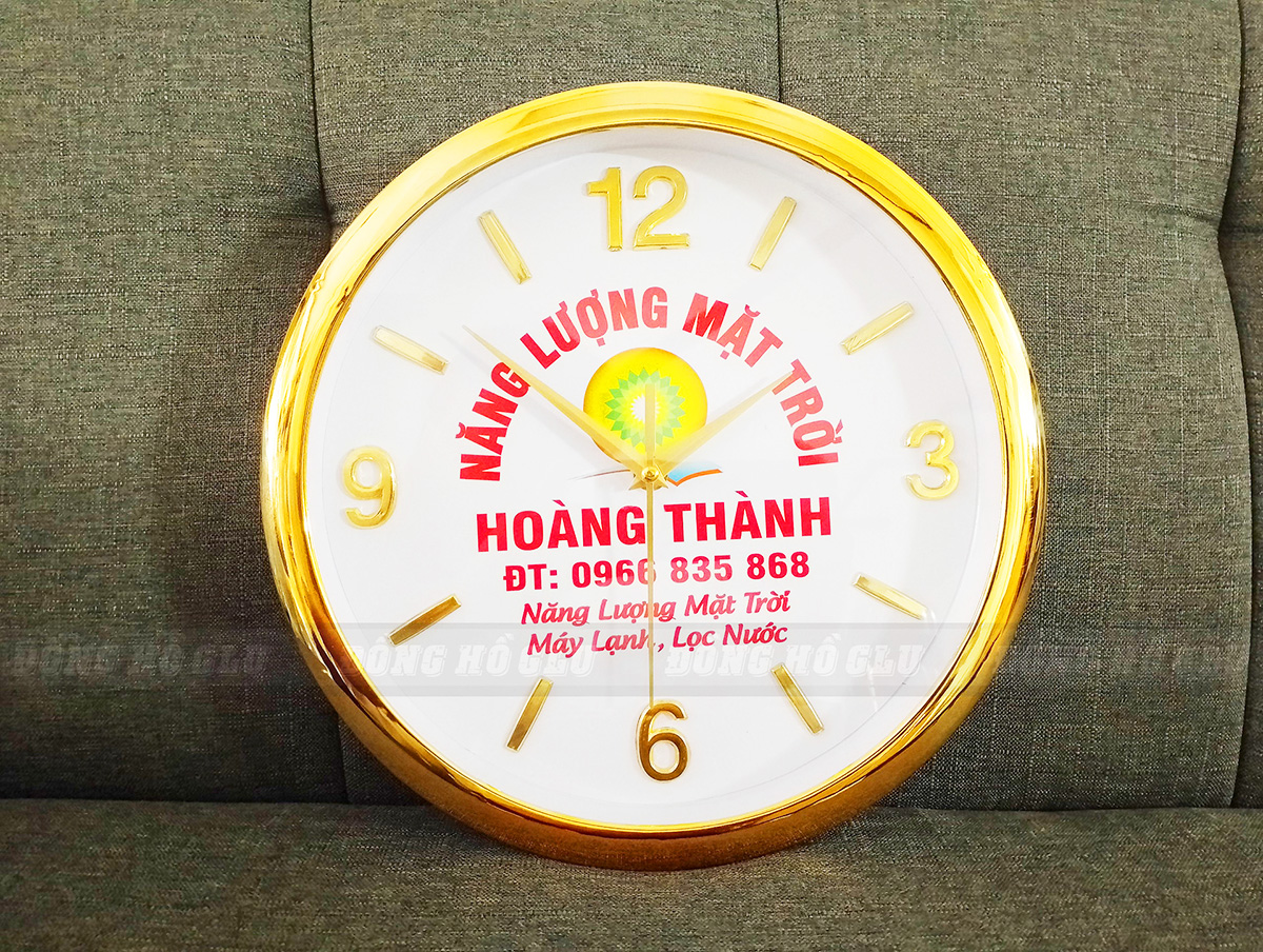 Đồng Hồ GLU chuyên sản xuất các loại đồng hồ treo tường cho doanh nghiệp theo thiết kế mà khách hàng yêu cầu. Chúng tôi có nhiều năm kinh nghiệm in logo lên đồng hồ, cùng dây chuyền sản xuất khép kín nên chắc chắn sẽ mang đến cho bạn những sản phẩm chất lượng, đạt chuẩn để làm quà tặng khách hàng, đối tác.Không chỉ nhận in logo đồng hồ theo yêu cầu, chúng tôi còn nhận gia công đồng hồ treo tường số lượng lớn theo yêu cầu. Nếu bạn cần một sản phẩm độc đáo với số lượng lớn chúng tôi hoàn toàn có khả năng đáp ứng nhanh chóng và kịp thời. Chúng tôi hiểu rằng, logo thương hiệu được in trên đồng hồ cũng là một cách quảng bá rất hữu ích cho công ty, giúp hình ảnh của công ty vươn xa ra thị trường bên ngoài nên nên việc in logo thương hiệu, tên công ty lên đồng hồ phải đẹp và rõ nét. Việc logo luôn bền đẹp như mới luôn là điều bắt buộc để hiệu quả quảng cáo cho công ty được tốt nhất. Chính vì lý do đó mà chúng tôi luôn sử dụng máy in màu Nhật Bản, cùng nhiều loại mực in chính hãng nên khi in hình ảnh, chữ lên đồng hồ sẽ rất sống động, màu sắc trung thực và rất khí bong tróc và phai màu trong các điều kiện khí hậu khác nhau.